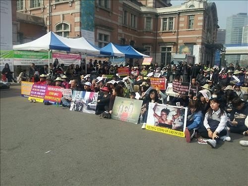 2016년 3월 보수단체와 기독교단체들이 서울역 광장에 모여 반(反) 이슬람 시위를 열고 있다. 연합뉴스